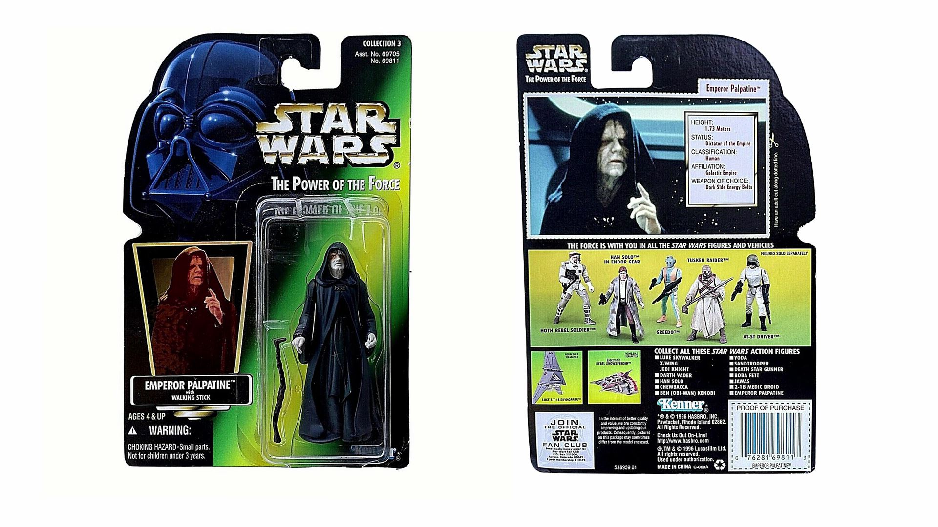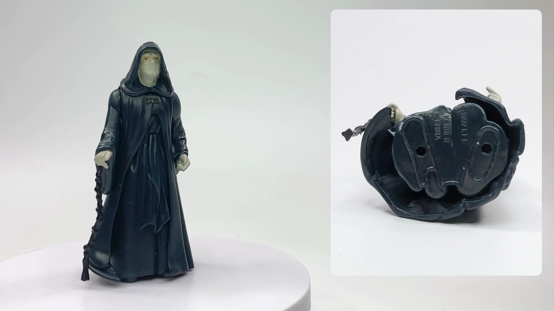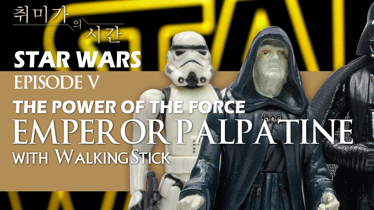 이번 리뷰 피규어는 1997년 출시된 3.75인치 팰퍼틴 황제입니다. 지팡이만 포함된 단출한 구성으로, 얼굴은 밋밋하지만 로브 주름은 잘 표현됐습니다. 로브 분리 구조는 로얄가드와 유사하며, 다리와 옷 일체형이라 안정적입니다. 지팡이는 다소 헐거우나, 베이더·스톰트루퍼와 함께라면 컬렉션에 필수적인 아이템입니다.